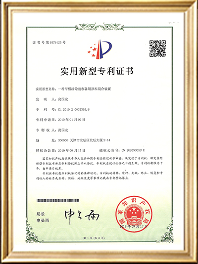 實用新型專利證書(一種甲醛清除劑的原料存儲