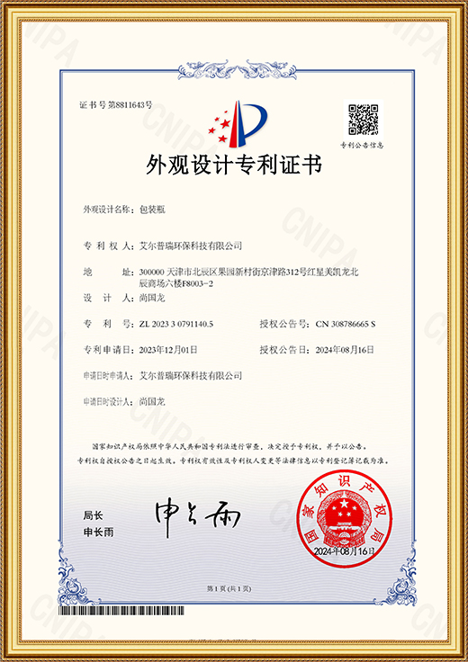 實用新型專利證書(一種負氧離子清除液的噴涂